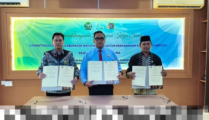 Penandatanganan PKS ini dilakukan oleh Kepala Kejaksaan Negeri Natuna, Erwin Indrapraja, bersama dengan Pelaksana Harian (Plh.) Kepala Kantor Kementerian Agama Kabupaten Natuna, Muhd. Sabirin, serta Kepala Kantor Pertanahan Kabupaten Natuna, Amir Nugroho. Kerja sama ini bertujuan untuk memperkuat sinergi dalam pelaksanaan tugas dan fungsi masing-masing instansi, terutama dalam percepatan sertifikasi tanah wakaf dan pengamanan tempat peribadatan.